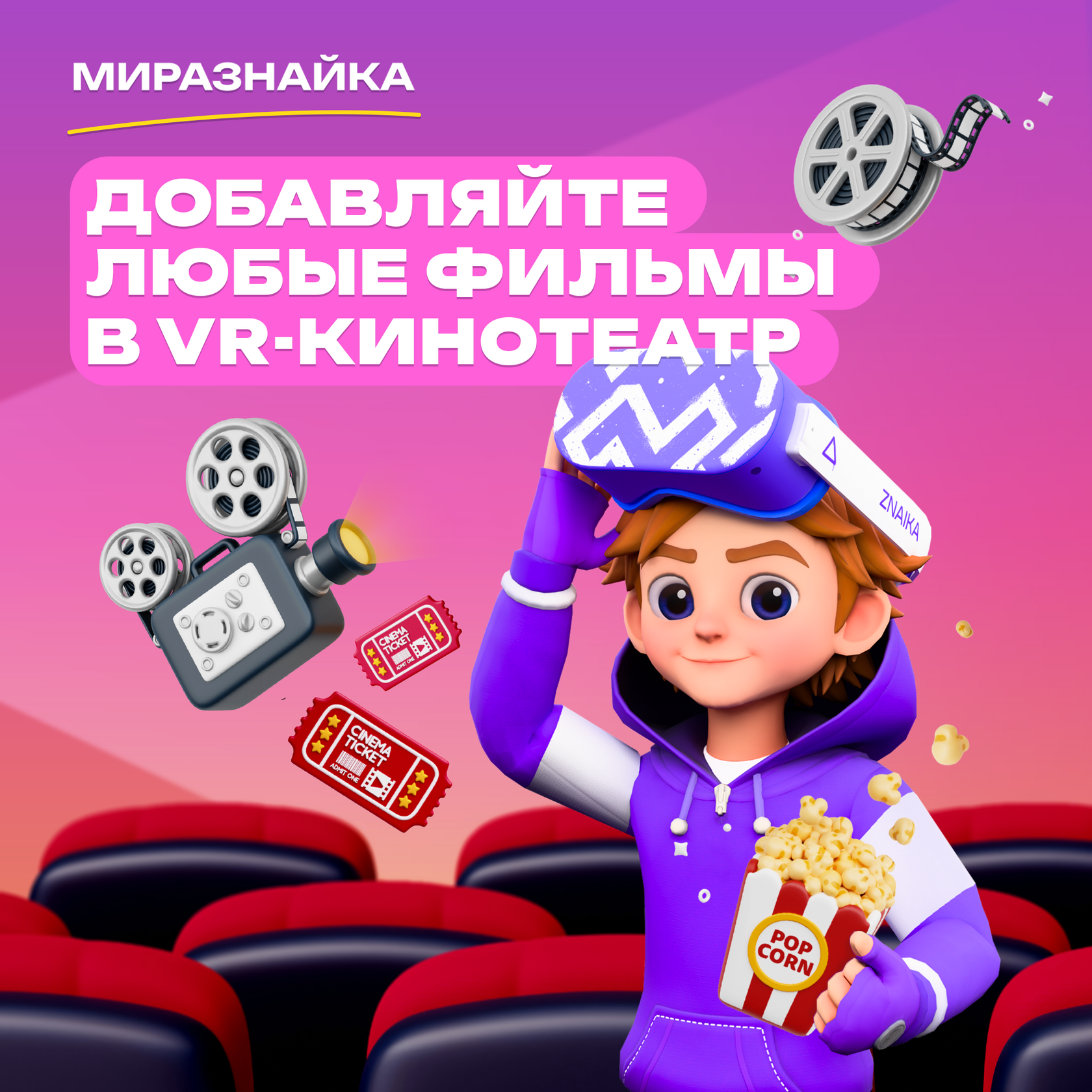 Больше не нужно ждать, пока мы обновим коллекцию — вы самостоятельно управляете программой и решаете, когда и какой фильм показать. VR-кинотеатр делает бизнес гибким, помогает привлекать больше аудитории и увеличивает долю повторных визитов — ведь контент постоянно меняется и остаётся интересным для клиентов.