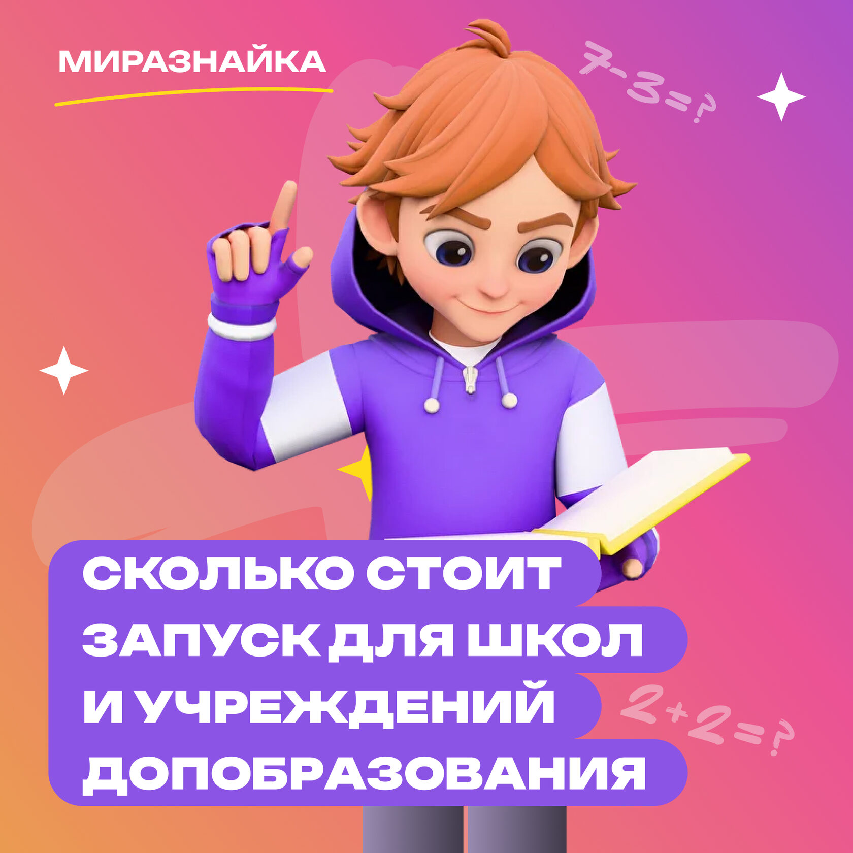«Миразнайка» — комплексное решение, которое позволяет легко и быстро внедрить виртуальную и смешанную реальность в учебный процесс. Занятия подойдут частным и государственным школам и детским садам, учреждениям дополнительного образования. Всё, что вам нужно — это помещение, об остальном мы позаботились.